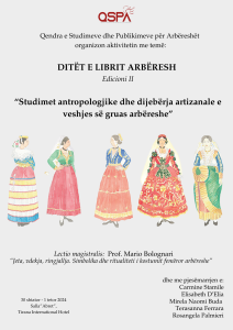 Qendra e Studimeve dhe Publikimeve për Arbëreshët (QSPA) ka kënaqësinë t’ju ftojë të merrni pjesë në edicionin e dytë të veprimtarisë: “Ditët e librit arbëresh”, i cili nis ditën e hënë, datë 30 shtator, në Hotel Tirana International (salla “Abret”)